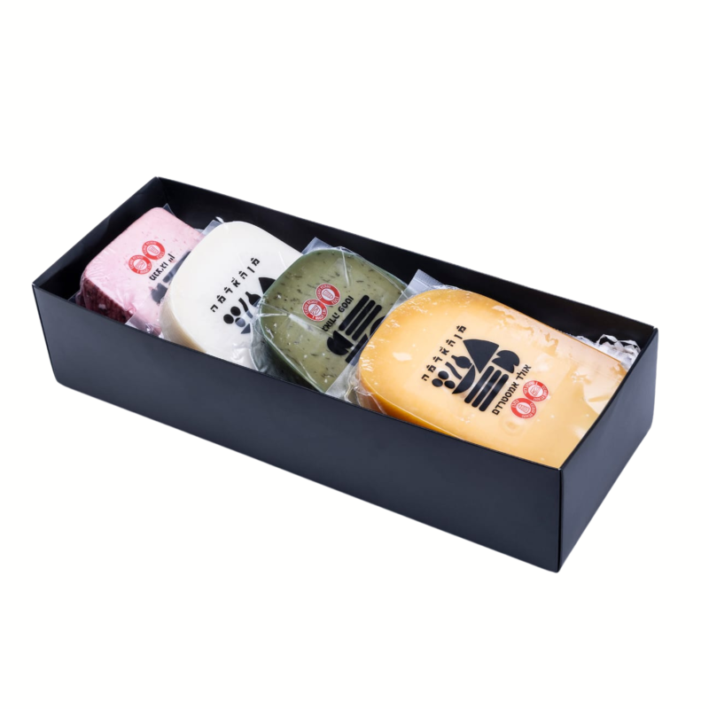 ה-מארז הכי מושלם לחג השבועות המאגד בתוכו את הגבינות שחייבות להיות אצלכם בשולחן החג (כ200 ג' לחריץ גבינה)- גבינות אולד אמסטרדם מיושנת , גבינת כבשים ביין, תום עיזים וכמובן גאודה פסטו שתוסיף צבע וטעם נפלא ! הכל מגיע בקופסת אריזה חגיגית